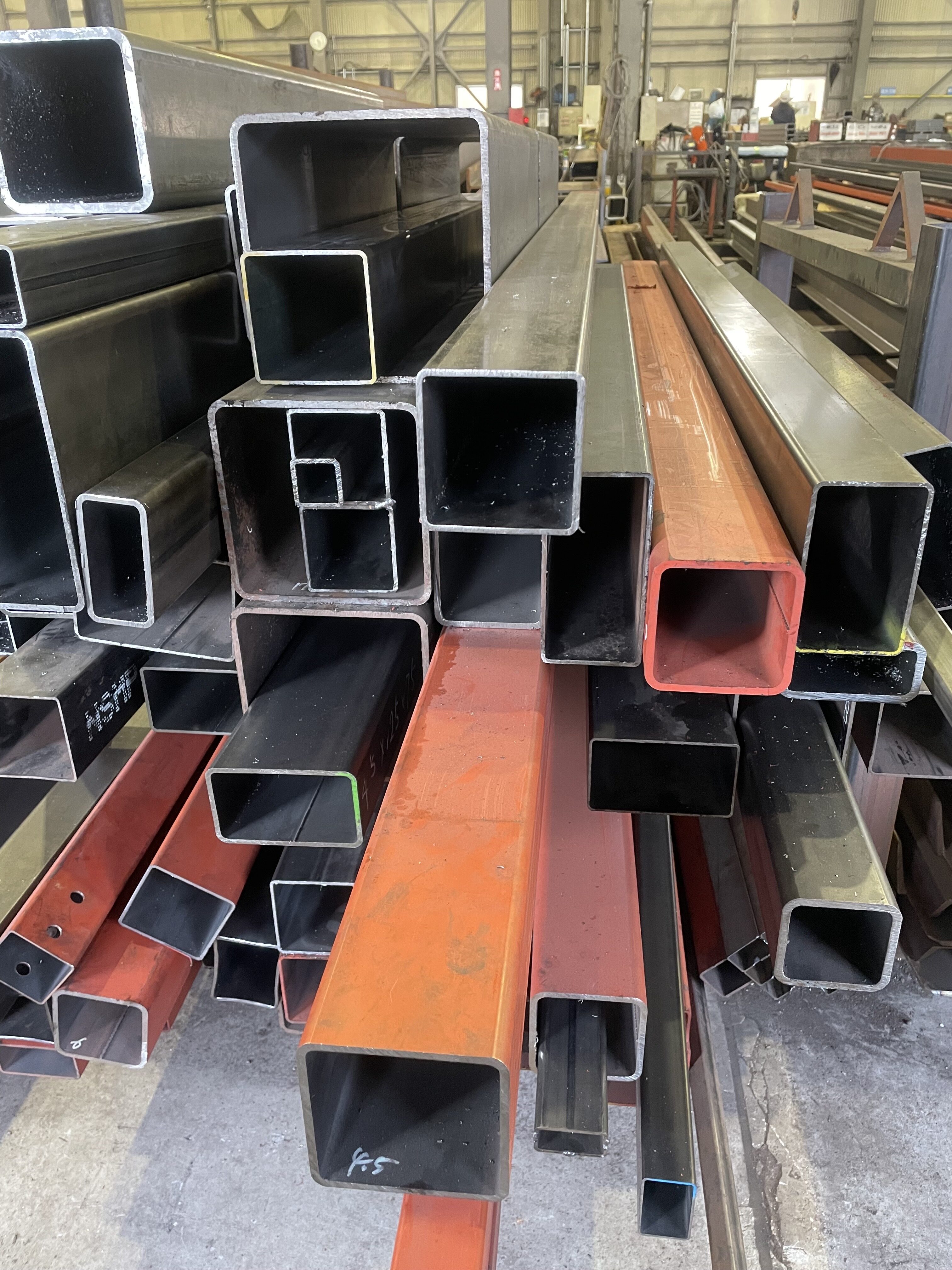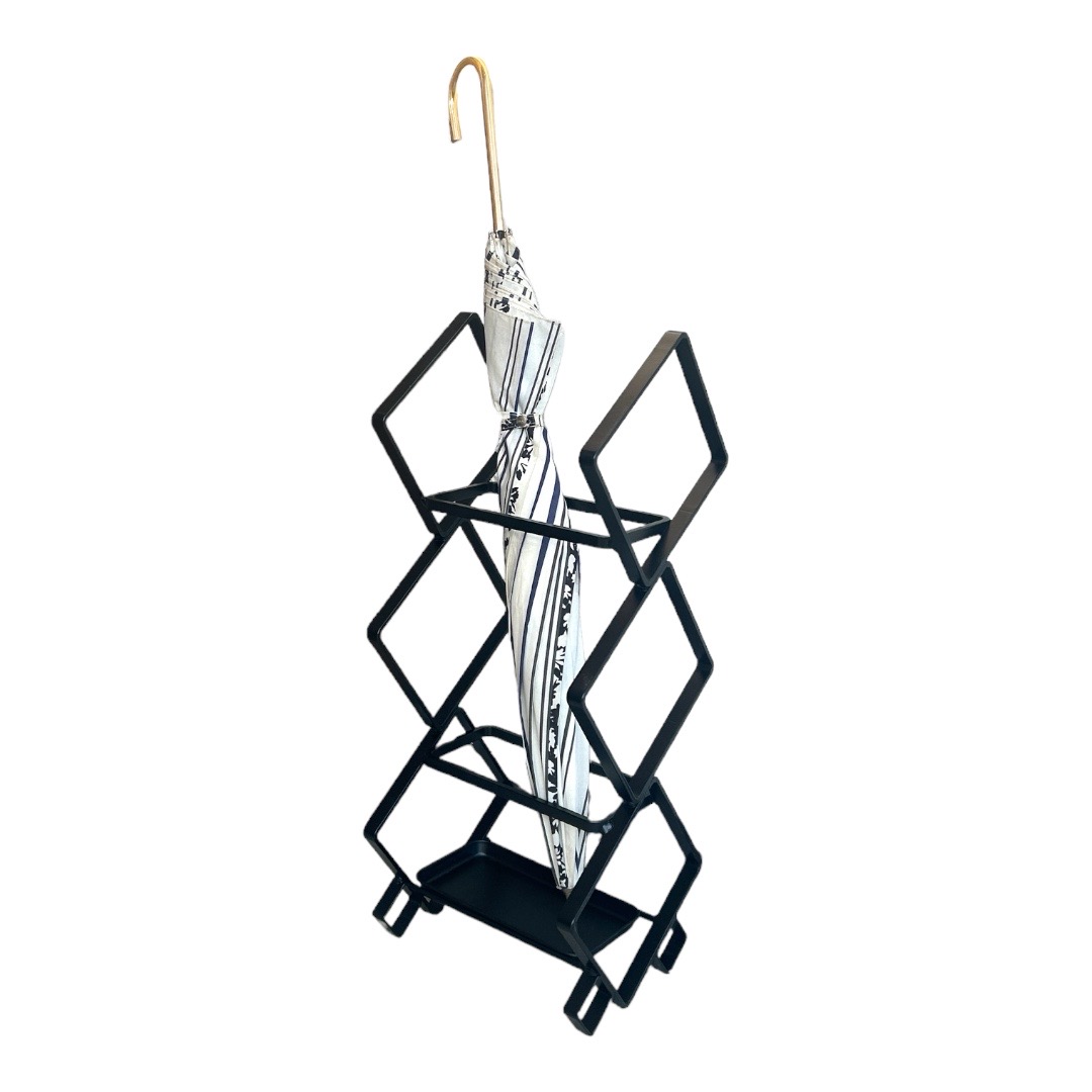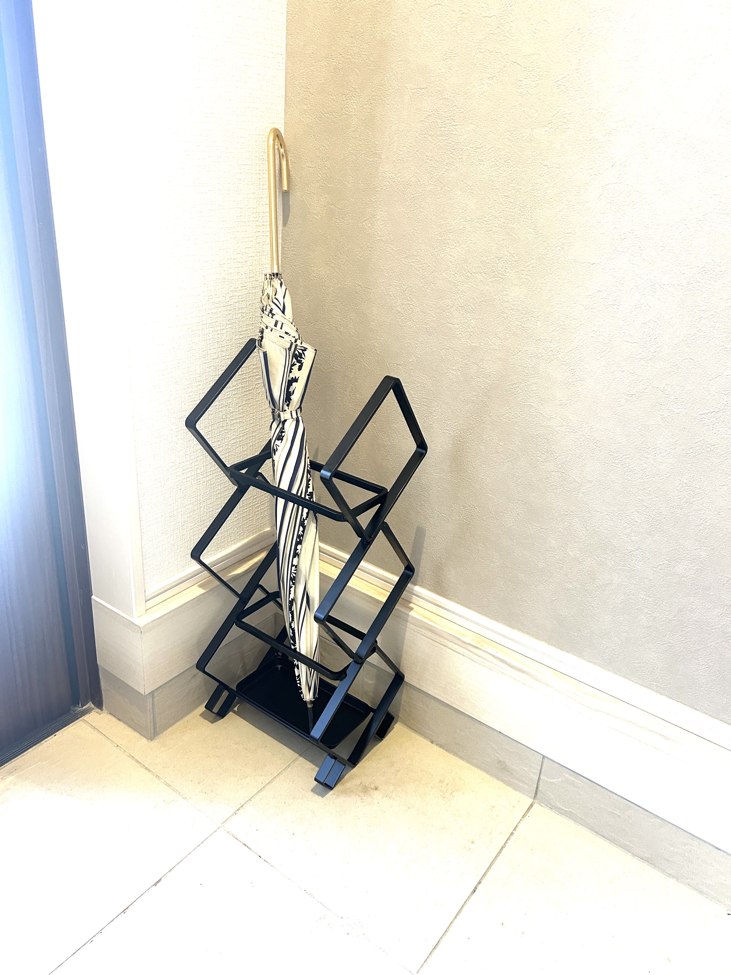 建物の土台や柱となる四角いパイプを5ミリの厚みに切ってデザインしたアートな傘立てです。